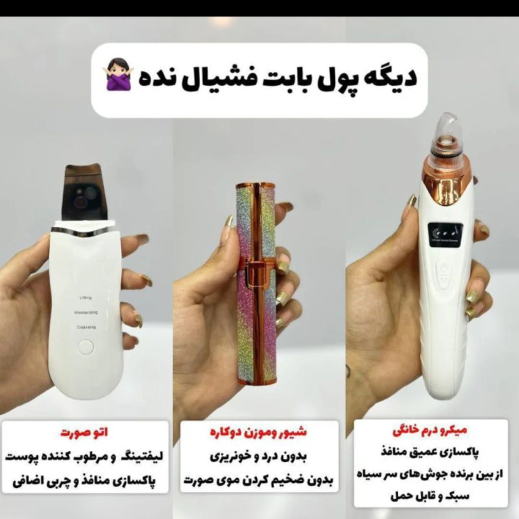 این پک ۳تایی شامل میکرودرم خانگی برای پاکسازی عمیق منافذ و ازبین برنده جوش های سرسیاه، شیور و موزن دوکاره که بدون درد و خونریزی موی صورت را ضخیم نمیکند و اتوصورت برای لیفتینگ و مرطوبکننده پوست است.